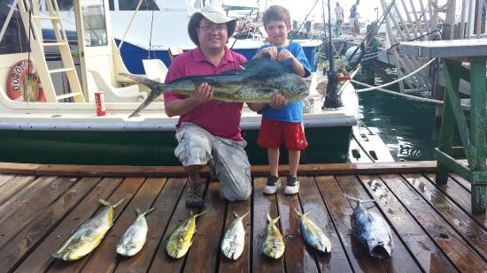 There are variety of fish including Tuna, Blue Marlin, Wahoo, Barracuda, Shark and Sail Fish. Fish caught are distributed equally between the captain and crew.